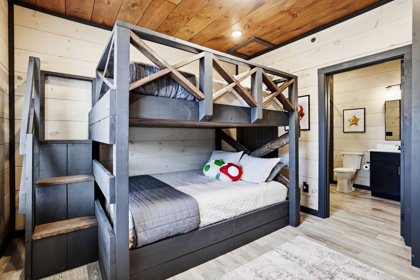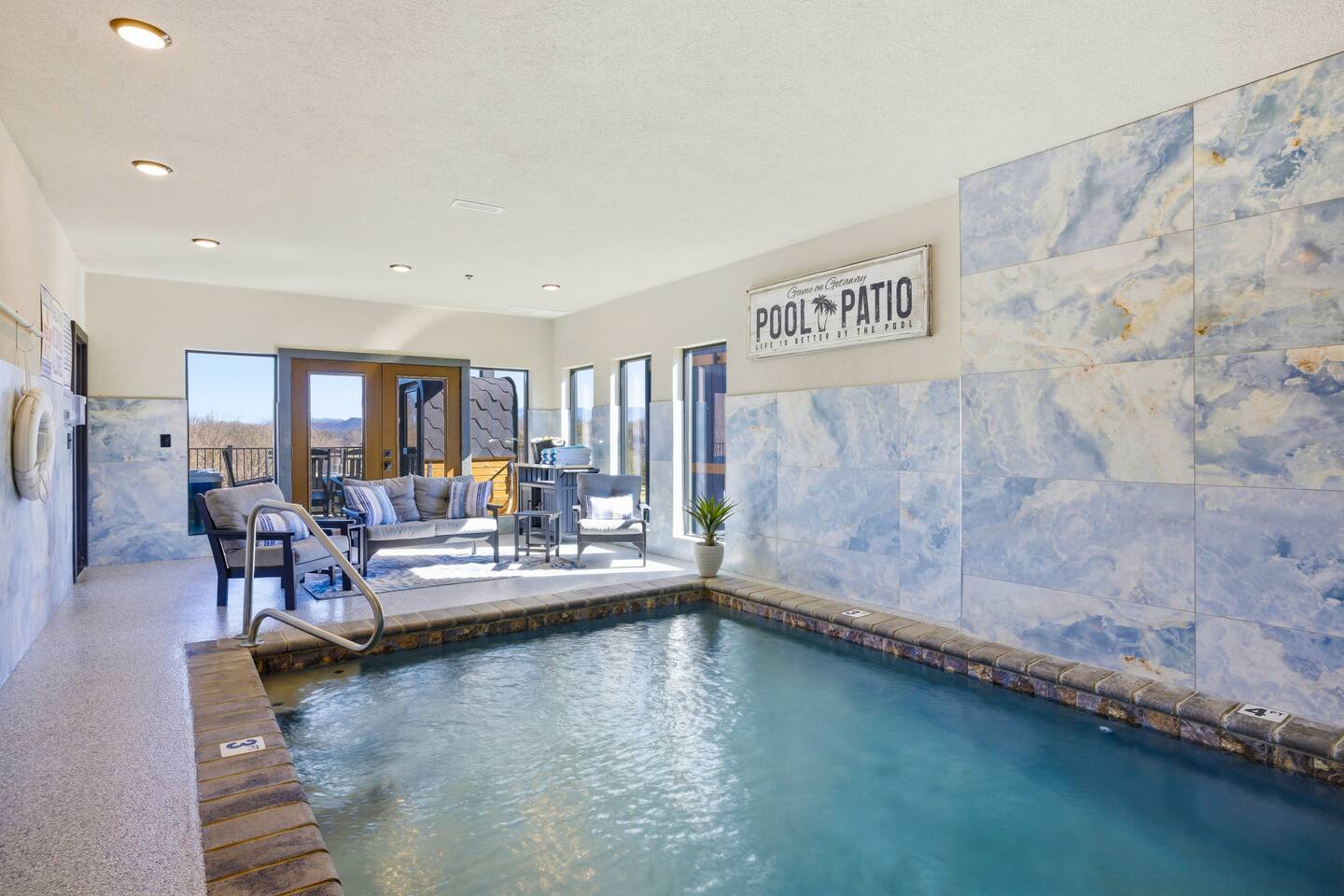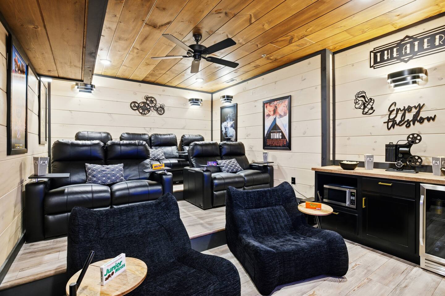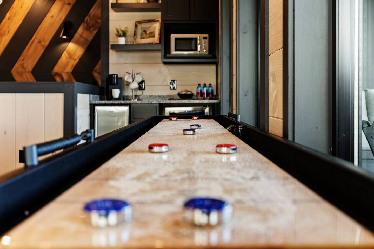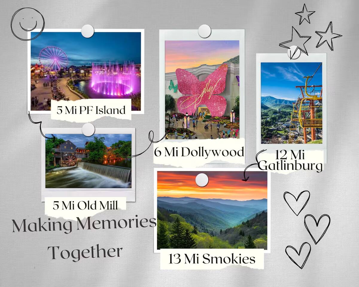 📋 Overview of Amenities • 5 Bedrooms / 10 Beds (4 King, 4 Queen, 2 Twin) / Sleeps 18 • 6 Full Bathrooms (5 Walk-in Showers / 1 Full Bathtub/Shower) • High Speed Internet / Wi‑Fi • Private Heated Indoor Pool (maintained at 84°F) • Hot Tub • Sauna • Fire Table with Seating and Stunning Mountain Views • Theater Room • Shuffleboard • PlayStation 5 • Nintendo Switch • Arcades • Exercise bike • Yoga mats & weights 🚗 EV Charger - Complimentary NACS style plug (Non- Tesla owners, bring your adapter). 🏔 One of the few cabins in Smith Creek Reserve with private patios and unobstructed Smoky Mountain views! 🏖 Smith Creek Reserve Resort & Water Park • Pickleball • Pool Tables • Infinity Pool • Lazy River • Outdoor Movie Theater • Mini Golf Course • Cabanas --- 📍 Location The Game on Getaway cabin is perfectly positioned within the community. Located just a quick 2–3 minute walk to the Smith Creek Reserve Resort & Water Park entrance, while still offering a peaceful, secluded retreat. Start your mornings with coffee on one of three private patios as the sun rises over the Smokies, spend your days enjoying easy access to the resort amenities, and end your evenings soaking in the hot tub or relaxing around the fire table beneath the stars. Game On Getaway is located just 5 minutes from the Smoky Mountain Parkway, providing convenient access to the best attractions in Pigeon Forge, Gatlinburg, and Sevierville. Its location near the parkway makes navigation a breeze — enjoy mountain views without driving on steep, mountain roads. Perfect location for year-round getaways! --- 🎡 Attractions Nearby • Tanger Outlets – 1.5 miles • WonderWorks Indoor Amusement Park – 2.0 miles • The Island at Pigeon Forge – 3.5 miles • Sevierville Convention Center – 6 miles • Dollywood – 7 miles • Downtown Gatlinburg / Anakeesta / Ober Gatlinburg– 12 miles • Great Smoky Mountains National Park – 13 miles --- 🛏 Re‑Charge Each of the 5 bedrooms has a full en‑suite bathroom: ⭐️ Center Star Suite (King) – Lower level, between Theater Room and Pool Room, mountain views. ♦️ Royal Retreat (King) – Main floor, mountain views. 🏠 Park Place (King) – Main floor, easy accessibility. ♜ The Rook (King) – Second floor, mountain views. 🌟 Power‑Up Pad (2 sets Queen‑over‑Queen bunks) – Second floor, perfect for kids and families. In addition to the 5 bedrooms, the Game Room on the second floor has a set of twin-over-twin bunks, with curtains for privacy. --- 🎮 Play • Shuffleboard • Poker / Game Table • Scrabble wall games • Giant Jenga & Tic Tac Toe • Variety of board games • Multicade arcade with 100s of games • Retro Game Stix + TVs in game room bunks • Nintendo Switch • PlayStation 5 • Private heated indoor pool • Pickleball equipment 🏖 Games at the Smith Creek Reserve Resort • Mini Golf • Pickleball Court • Pool Tables --- 🍴 Eat • Fully stocked kitchen (utensils, cookware, plates, mugs, etc.) • Stainless appliances (cooktop, oven, microwave, toaster, crock pot, Keurig/Drip combo coffee maker) • Seating: Kitchen table (10), island (6), patio (6) • Weber propane grill (lower patio) • Charcoal grill (front lot) — charcoal not provided --- 🛋 Relax • Large 6‑person hot tub (drained & refilled between bookings) • Traditional 2-person sauna (18+ only, follow posted rules) • Outdoor fire table & seating • Theater Room with reclining chairs, mini fridge, microwave, 75” TV --- 🏖 Smith Creek Reserve Resort Seasonal Schedule 2026 Winter (Jan–Feb) • Pickleball: Court will be available via external gate. • Waterpark and all other amenities closed January 1 - February 28. 2026 Peak Season (Mar–Oct) • Waterpark and all amenities open. • April–Aug: Daily 10a–10p • Mar, Sept, Oct: Sun–Thu 10a–8p / Fri–Sat 10a–10p 2026 Holiday Season (Nov–Dec) • Weekends only: Fri–Sun 10a–8p • If Temps > 60°F by Thursday and forecast holds, water features will be heated and open. Otherwise closed. • Pickleball & Mini Golf remain open year‑round. • Outdoor Movie Theater may operate additional holiday hours (weather permitting). --- ℹ️ Other Things to Note • Guests have full access to the entire cabin (apart from owner’s supply closets) • Pack ’n Play available (bring your own sheets) • High chair available • Baby gates are NOT provided. Please plan accordingly. • Indoor pool and access to hot tub and sauna secured with lock & separate code for child safety • Resort water park access is weather dependent • Starter supply of toiletries & paper products provided — bring extras for longer stays • Newer development, construction noise may occur • Free parking for multiple (8) vehicles --- Let us know if you have any questions or special requests — we're happy to accommodate when possible.