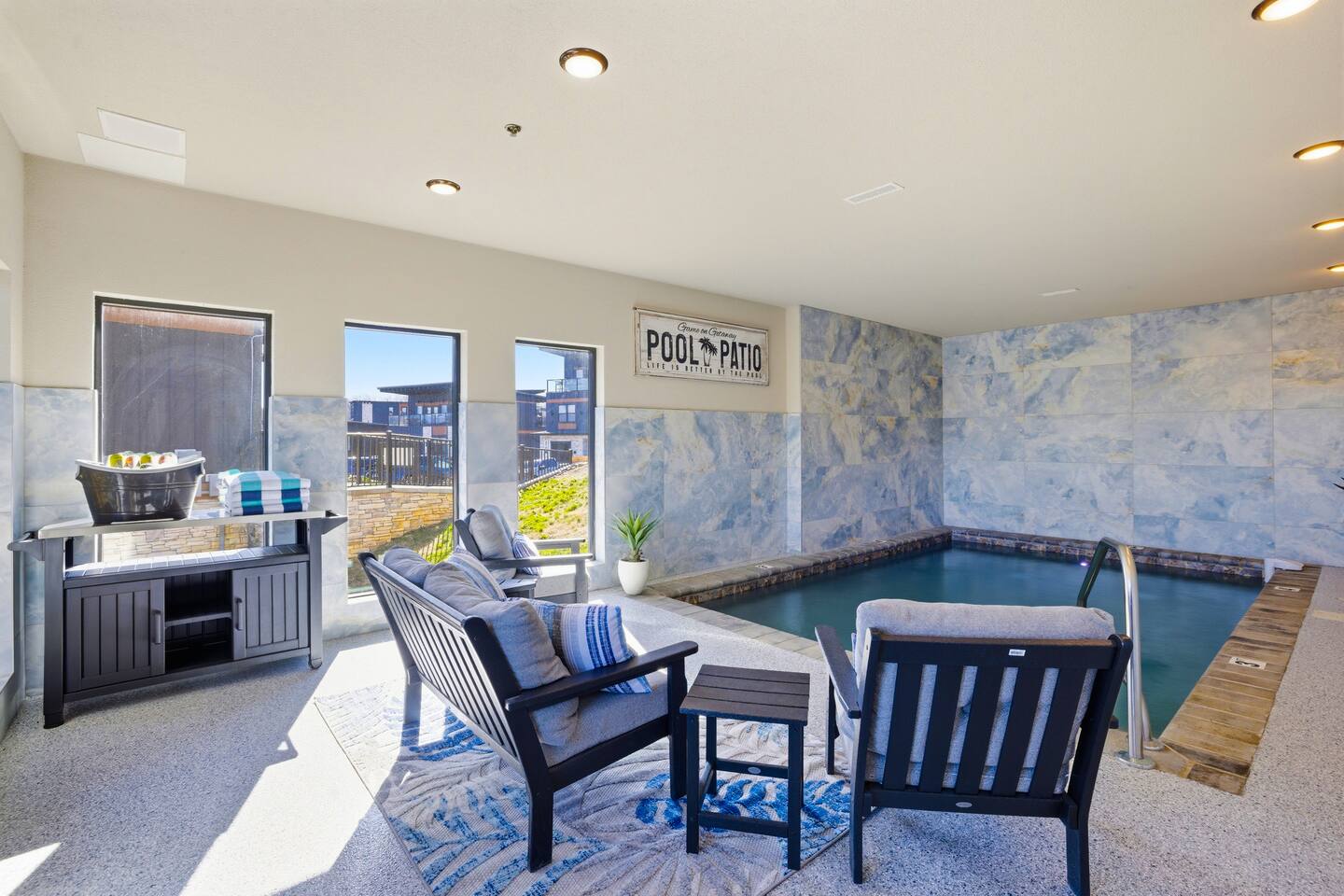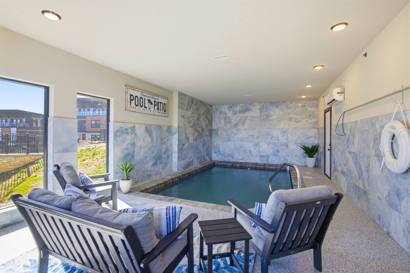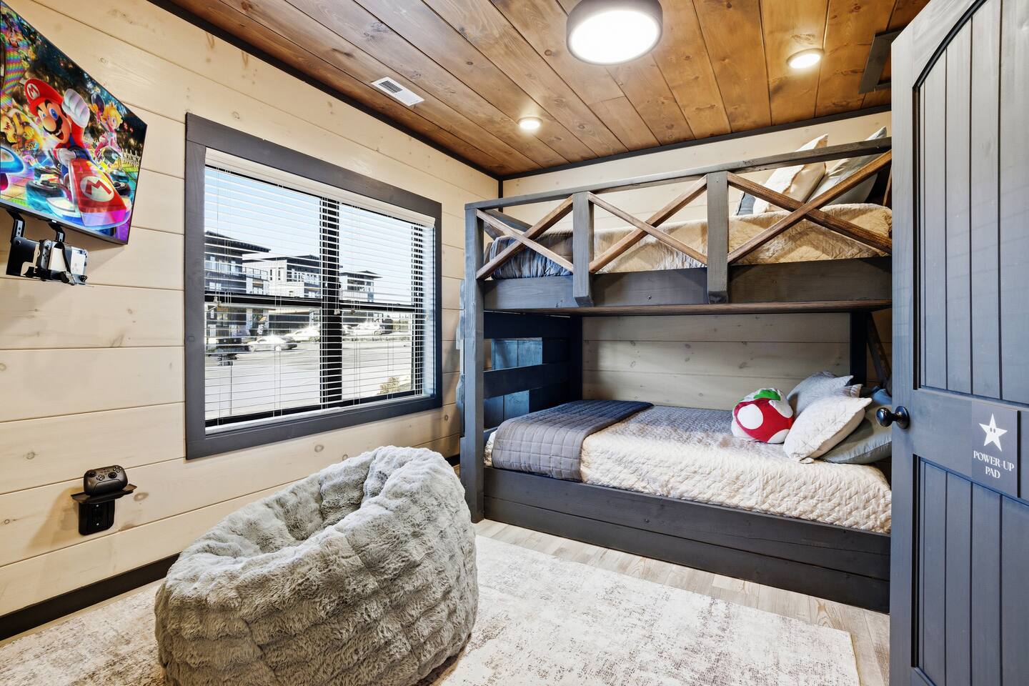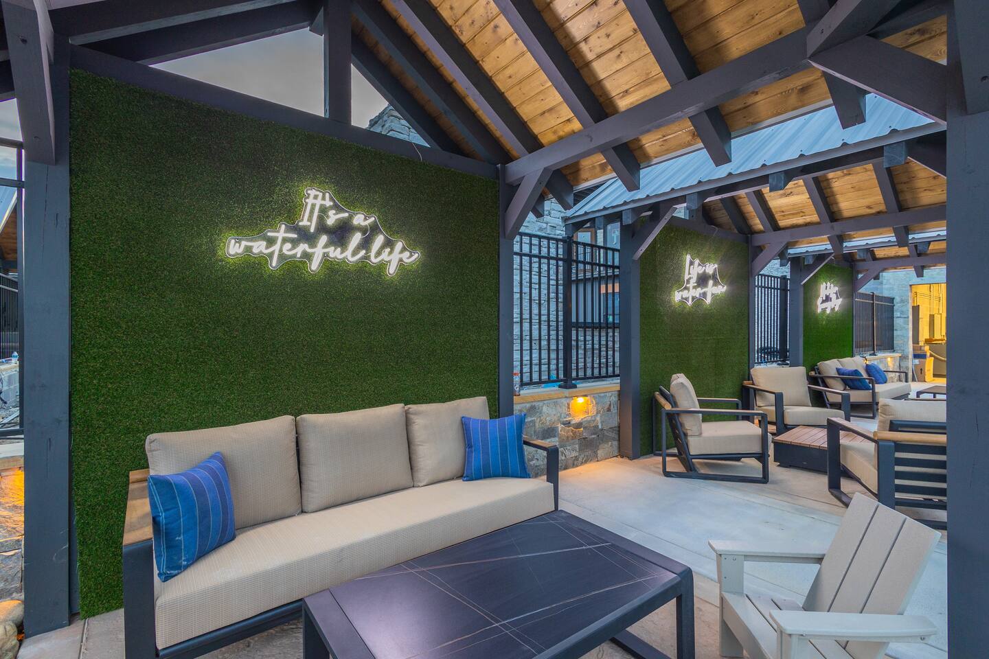 📋 Overview of Amenities • 5 Bedrooms / 10 Beds (4 King, 4 Queen, 2 Twin) / Sleeps 18 • 6 Full Bathrooms (5 Walk-in Showers / 1 Full Bathtub/Shower) • High Speed Internet / Wi‑Fi • Private Heated Indoor Pool (maintained at 84°F) • Hot Tub • Sauna • Fire Table with Seating and Stunning Mountain Views • Theater Room • Shuffleboard • PlayStation 5 • Nintendo Switch • Arcades • Exercise bike • Yoga mats & weights 🚗 EV Charger - Complimentary NACS style plug (Non- Tesla owners, bring your adapter). 🏔 One of the few cabins in Smith Creek Reserve with private patios and unobstructed Smoky Mountain views! 🏖 Smith Creek Reserve Resort & Water Park • Pickleball • Pool Tables • Infinity Pool • Lazy River • Outdoor Movie Theater • Mini Golf Course • Cabanas --- 📍 Location The Game on Getaway cabin is perfectly positioned within the community. Located just a quick 2–3 minute walk to the Smith Creek Reserve Resort & Water Park entrance, while still offering a peaceful, secluded retreat. Start your mornings with coffee on one of three private patios as the sun rises over the Smokies, spend your days enjoying easy access to the resort amenities, and end your evenings soaking in the hot tub or relaxing around the fire table beneath the stars. Game On Getaway is located just 5 minutes from the Smoky Mountain Parkway, providing convenient access to the best attractions in Pigeon Forge, Gatlinburg, and Sevierville. Its location near the parkway makes navigation a breeze — enjoy mountain views without driving on steep, mountain roads. Perfect location for year-round getaways! --- 🎡 Attractions Nearby • Tanger Outlets – 1.5 miles • WonderWorks Indoor Amusement Park – 2.0 miles • The Island at Pigeon Forge – 3.5 miles • Sevierville Convention Center – 6 miles • Dollywood – 7 miles • Downtown Gatlinburg / Anakeesta / Ober Gatlinburg– 12 miles • Great Smoky Mountains National Park – 13 miles --- 🛏 Re‑Charge Each of the 5 bedrooms has a full en‑suite bathroom: ⭐️ Center Star Suite (King) – Lower level, between Theater Room and Pool Room, mountain views. ♦️ Royal Retreat (King) – Main floor, mountain views. 🏠 Park Place (King) – Main floor, easy accessibility. ♜ The Rook (King) – Second floor, mountain views. 🌟 Power‑Up Pad (2 sets Queen‑over‑Queen bunks) – Second floor, perfect for kids and families. In addition to the 5 bedrooms, the Game Room on the second floor has a set of twin-over-twin bunks, with curtains for privacy. --- 🎮 Play • Shuffleboard • Poker / Game Table • Scrabble wall games • Giant Jenga & Tic Tac Toe • Variety of board games • Multicade arcade with 100s of games • Retro Game Stix + TVs in game room bunks • Nintendo Switch • PlayStation 5 • Private heated indoor pool • Pickleball equipment 🏖 Games at the Smith Creek Reserve Resort • Mini Golf • Pickleball Court • Pool Tables --- 🍴 Eat • Fully stocked kitchen (utensils, cookware, plates, mugs, etc.) • Stainless appliances (cooktop, oven, microwave, toaster, crock pot, Keurig/Drip combo coffee maker) • Seating: Kitchen table (10), island (6), patio (6) • Weber propane grill (lower patio) • Charcoal grill (front lot) — charcoal not provided --- 🛋 Relax • Large 6‑person hot tub (drained & refilled between bookings) • Traditional 2-person sauna (18+ only, follow posted rules) • Outdoor fire table & seating • Theater Room with reclining chairs, mini fridge, microwave, 75” TV --- 🏖 Smith Creek Reserve Resort Seasonal Schedule 2026 Winter (Jan–Feb) • Pickleball: Court will be available via external gate. • Waterpark and all other amenities closed January 1 - February 28. 2026 Peak Season (Mar–Oct) • Waterpark and all amenities open. • April–Aug: Daily 10a–10p • Mar, Sept, Oct: Sun–Thu 10a–8p / Fri–Sat 10a–10p 2026 Holiday Season (Nov–Dec) • Weekends only: Fri–Sun 10a–8p • If Temps > 60°F by Thursday and forecast holds, water features will be heated and open. Otherwise closed. • Pickleball & Mini Golf remain open year‑round. • Outdoor Movie Theater may operate additional holiday hours (weather permitting). --- ℹ️ Other Things to Note • Guests have full access to the entire cabin (apart from owner’s supply closets) • Pack ’n Play available (bring your own sheets) • High chair available • Baby gates are NOT provided. Please plan accordingly. • Indoor pool and access to hot tub and sauna secured with lock & separate code for child safety • Resort water park access is weather dependent • Starter supply of toiletries & paper products provided — bring extras for longer stays • Newer development, construction noise may occur • Free parking for multiple (8) vehicles --- Let us know if you have any questions or special requests — we're happy to accommodate when possible.