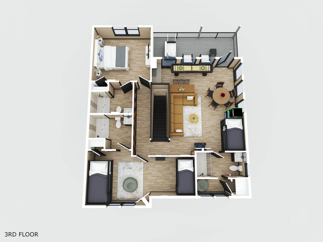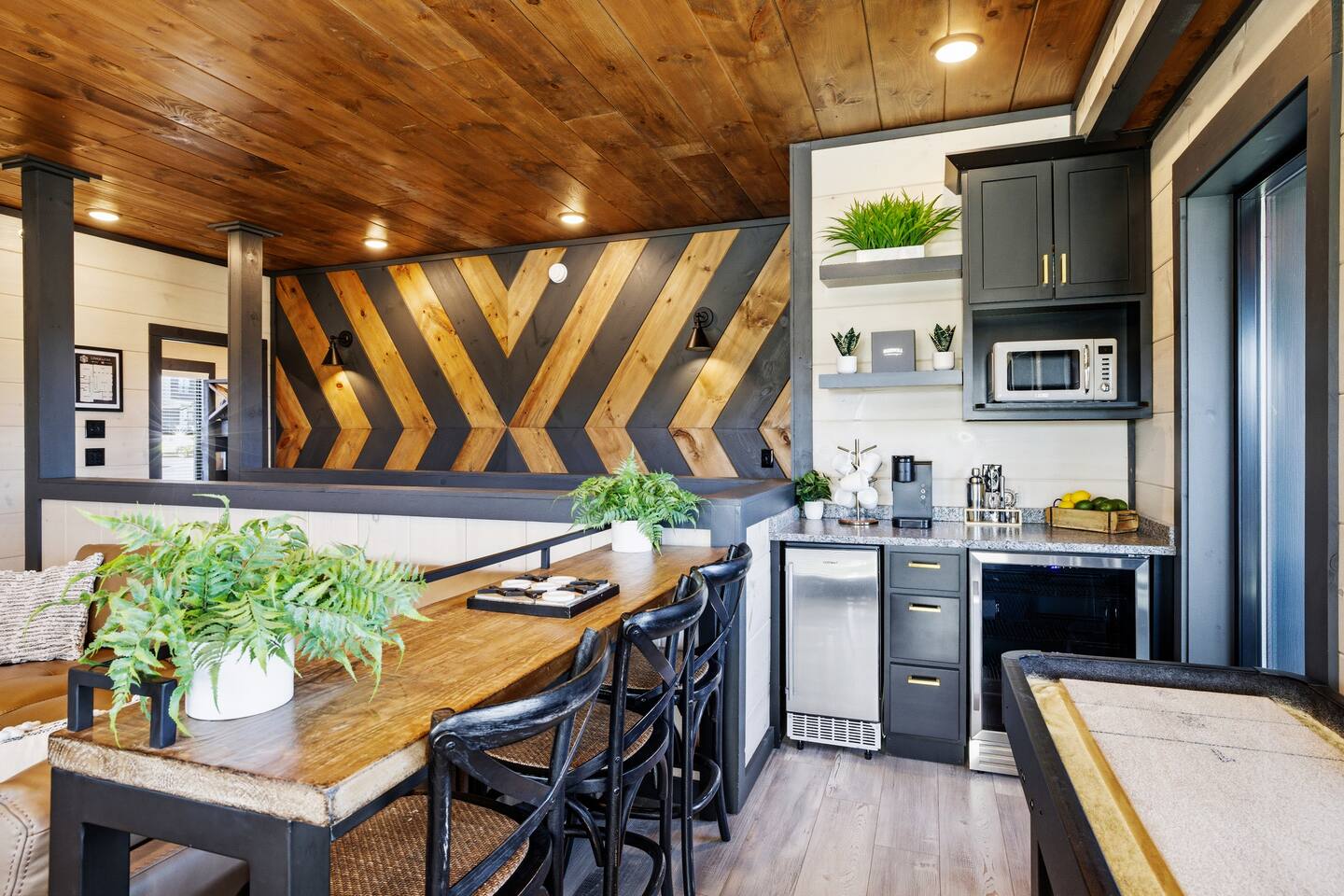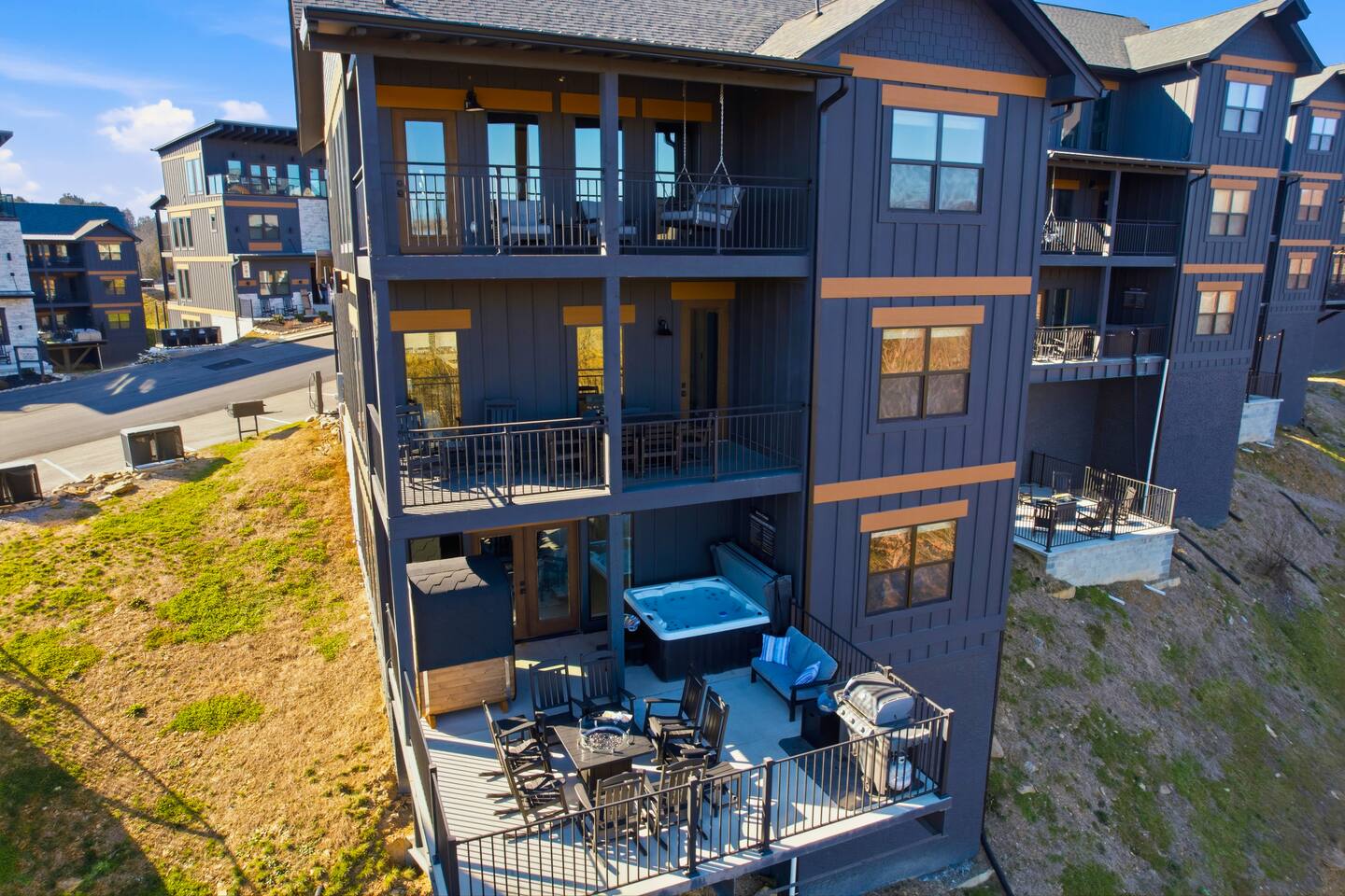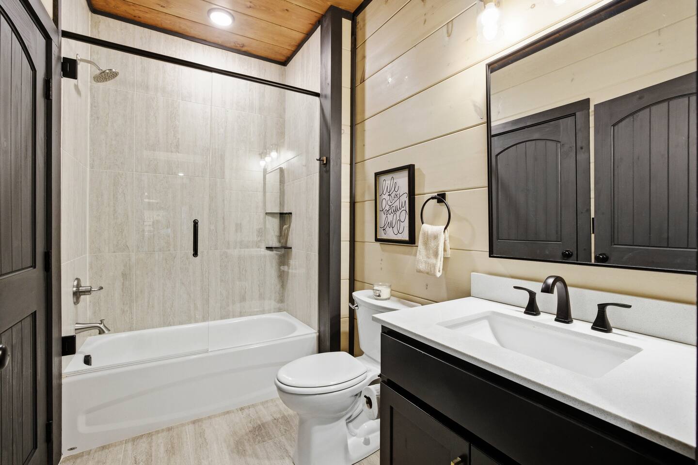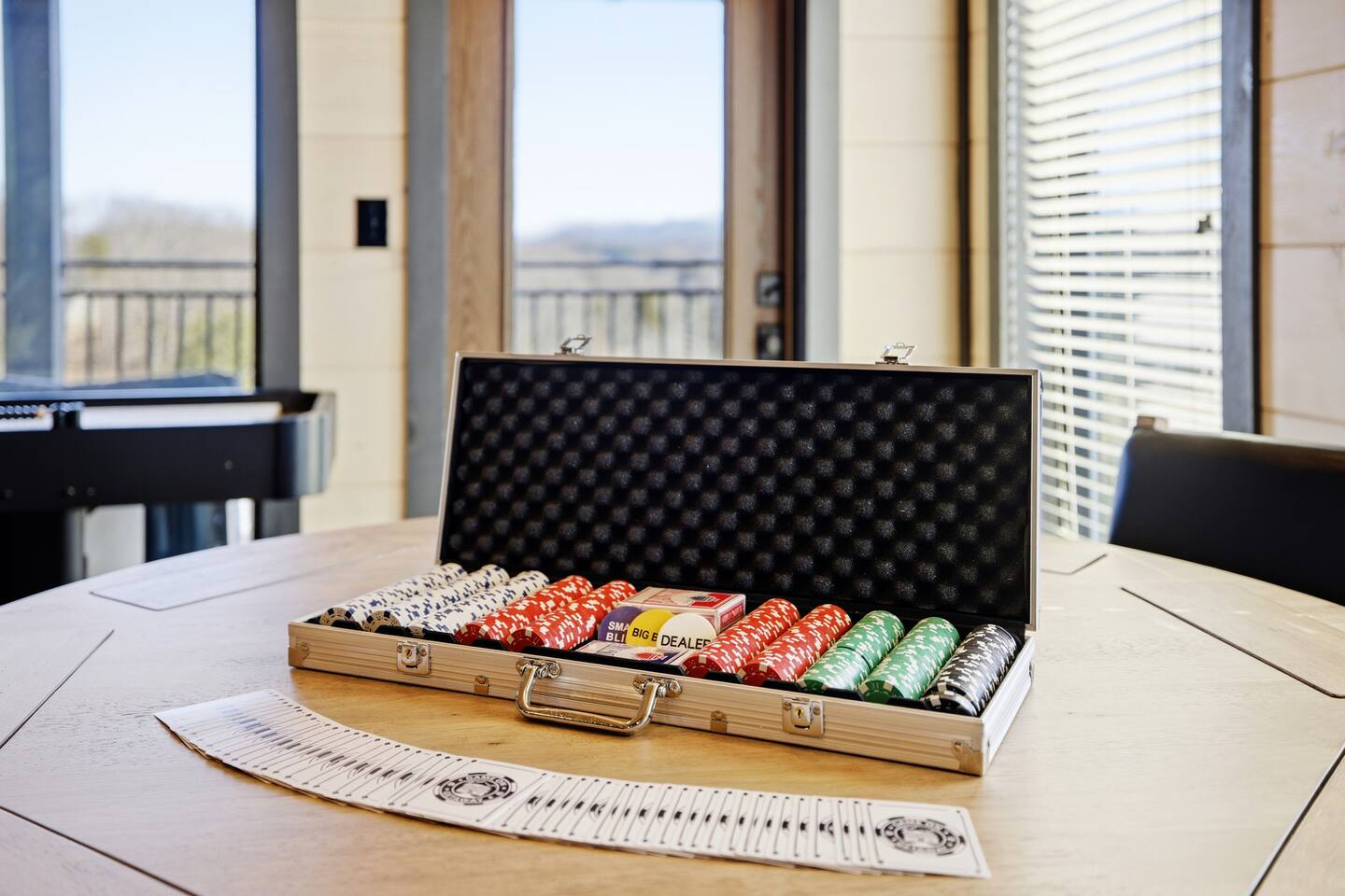 📋 Overview of Amenities • 5 Bedrooms / 10 Beds (4 King, 4 Queen, 2 Twin) / Sleeps 18 • 6 Full Bathrooms (5 Walk-in Showers / 1 Full Bathtub/Shower) • High Speed Internet / Wi‑Fi • Private Heated Indoor Pool (maintained at 84°F) • Hot Tub • Sauna • Fire Table with Seating and Stunning Mountain Views • Theater Room • Shuffleboard • PlayStation 5 • Nintendo Switch • Arcades • Exercise bike • Yoga mats & weights 🚗 EV Charger - Complimentary NACS style plug (Non- Tesla owners, bring your adapter). 🏔 One of the few cabins in Smith Creek Reserve with private patios and unobstructed Smoky Mountain views! 🏖 Smith Creek Reserve Resort & Water Park • Pickleball • Pool Tables • Infinity Pool • Lazy River • Outdoor Movie Theater • Mini Golf Course • Cabanas --- 📍 Location The Game on Getaway cabin is perfectly positioned within the community. Located just a quick 2–3 minute walk to the Smith Creek Reserve Resort & Water Park entrance, while still offering a peaceful, secluded retreat. Start your mornings with coffee on one of three private patios as the sun rises over the Smokies, spend your days enjoying easy access to the resort amenities, and end your evenings soaking in the hot tub or relaxing around the fire table beneath the stars. Game On Getaway is located just 5 minutes from the Smoky Mountain Parkway, providing convenient access to the best attractions in Pigeon Forge, Gatlinburg, and Sevierville. Its location near the parkway makes navigation a breeze — enjoy mountain views without driving on steep, mountain roads. Perfect location for year-round getaways! --- 🎡 Attractions Nearby • Tanger Outlets – 1.5 miles • WonderWorks Indoor Amusement Park – 2.0 miles • The Island at Pigeon Forge – 3.5 miles • Sevierville Convention Center – 6 miles • Dollywood – 7 miles • Downtown Gatlinburg / Anakeesta / Ober Gatlinburg– 12 miles • Great Smoky Mountains National Park – 13 miles --- 🛏 Re‑Charge Each of the 5 bedrooms has a full en‑suite bathroom: ⭐️ Center Star Suite (King) – Lower level, between Theater Room and Pool Room, mountain views. ♦️ Royal Retreat (King) – Main floor, mountain views. 🏠 Park Place (King) – Main floor, easy accessibility. ♜ The Rook (King) – Second floor, mountain views. 🌟 Power‑Up Pad (2 sets Queen‑over‑Queen bunks) – Second floor, perfect for kids and families. In addition to the 5 bedrooms, the Game Room on the second floor has a set of twin-over-twin bunks, with curtains for privacy. --- 🎮 Play • Shuffleboard • Poker / Game Table • Scrabble wall games • Giant Jenga & Tic Tac Toe • Variety of board games • Multicade arcade with 100s of games • Retro Game Stix + TVs in game room bunks • Nintendo Switch • PlayStation 5 • Private heated indoor pool • Pickleball equipment 🏖 Games at the Smith Creek Reserve Resort • Mini Golf • Pickleball Court • Pool Tables --- 🍴 Eat • Fully stocked kitchen (utensils, cookware, plates, mugs, etc.) • Stainless appliances (cooktop, oven, microwave, toaster, crock pot, Keurig/Drip combo coffee maker) • Seating: Kitchen table (10), island (6), patio (6) • Weber propane grill (lower patio) • Charcoal grill (front lot) — charcoal not provided --- 🛋 Relax • Large 6‑person hot tub (drained & refilled between bookings) • Traditional 2-person sauna (18+ only, follow posted rules) • Outdoor fire table & seating • Theater Room with reclining chairs, mini fridge, microwave, 75” TV --- 🏖 Smith Creek Reserve Resort Seasonal Schedule 2026 Winter (Jan–Feb) • Pickleball: Court will be available via external gate. • Waterpark and all other amenities closed January 1 - February 28. 2026 Peak Season (Mar–Oct) • Waterpark and all amenities open. • April–Aug: Daily 10a–10p • Mar, Sept, Oct: Sun–Thu 10a–8p / Fri–Sat 10a–10p 2026 Holiday Season (Nov–Dec) • Weekends only: Fri–Sun 10a–8p • If Temps > 60°F by Thursday and forecast holds, water features will be heated and open. Otherwise closed. • Pickleball & Mini Golf remain open year‑round. • Outdoor Movie Theater may operate additional holiday hours (weather permitting). --- ℹ️ Other Things to Note • Guests have full access to the entire cabin (apart from owner’s supply closets) • Pack ’n Play available (bring your own sheets) • High chair available • Baby gates are NOT provided. Please plan accordingly. • Indoor pool and access to hot tub and sauna secured with lock & separate code for child safety • Resort water park access is weather dependent • Starter supply of toiletries & paper products provided — bring extras for longer stays • Newer development, construction noise may occur • Free parking for multiple (8) vehicles --- Let us know if you have any questions or special requests — we're happy to accommodate when possible.