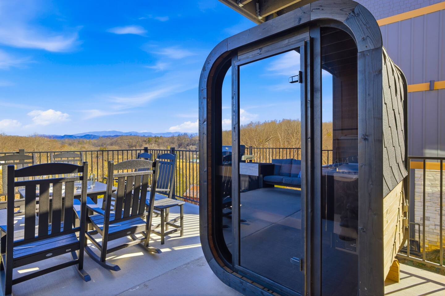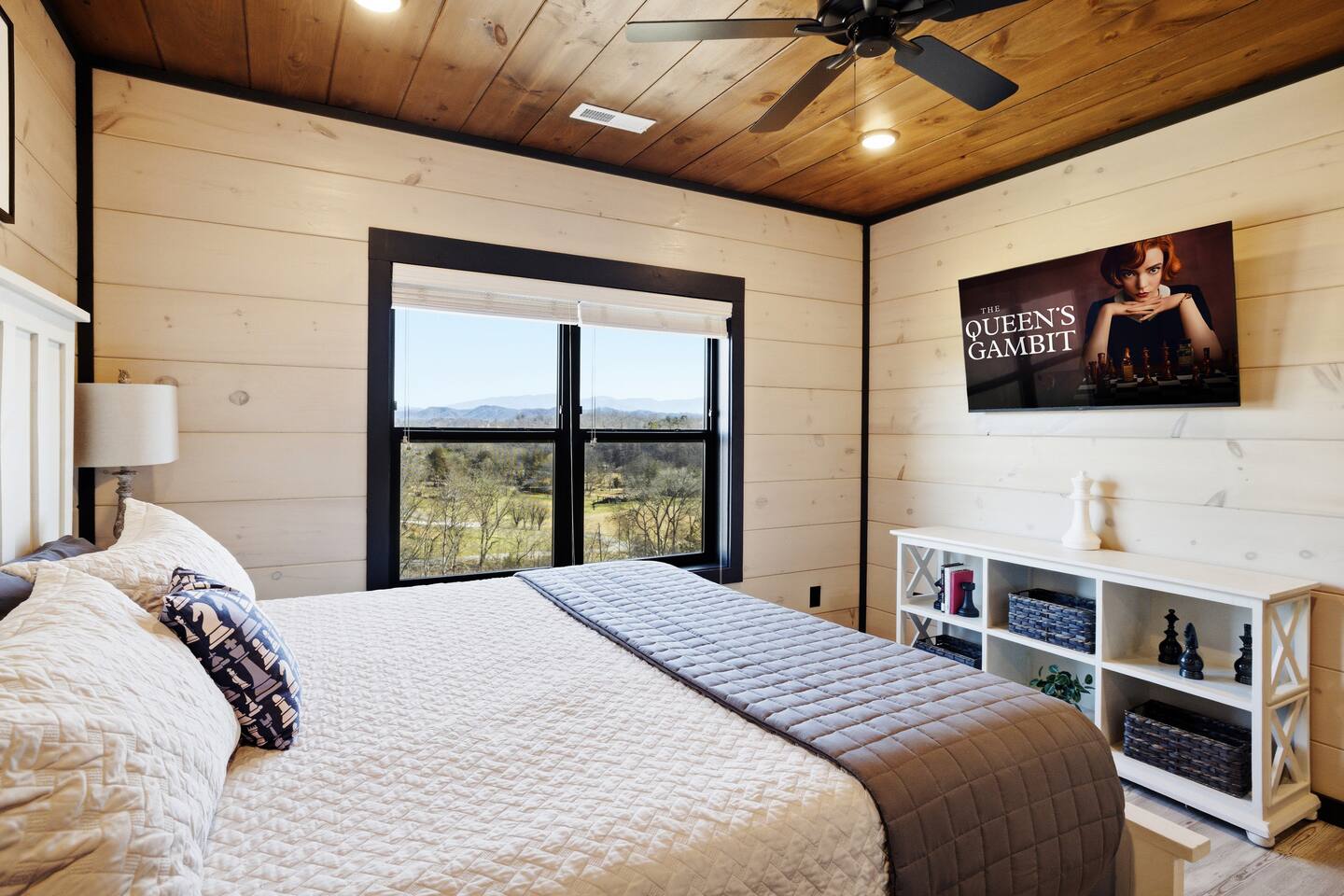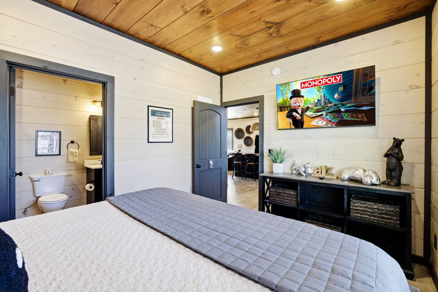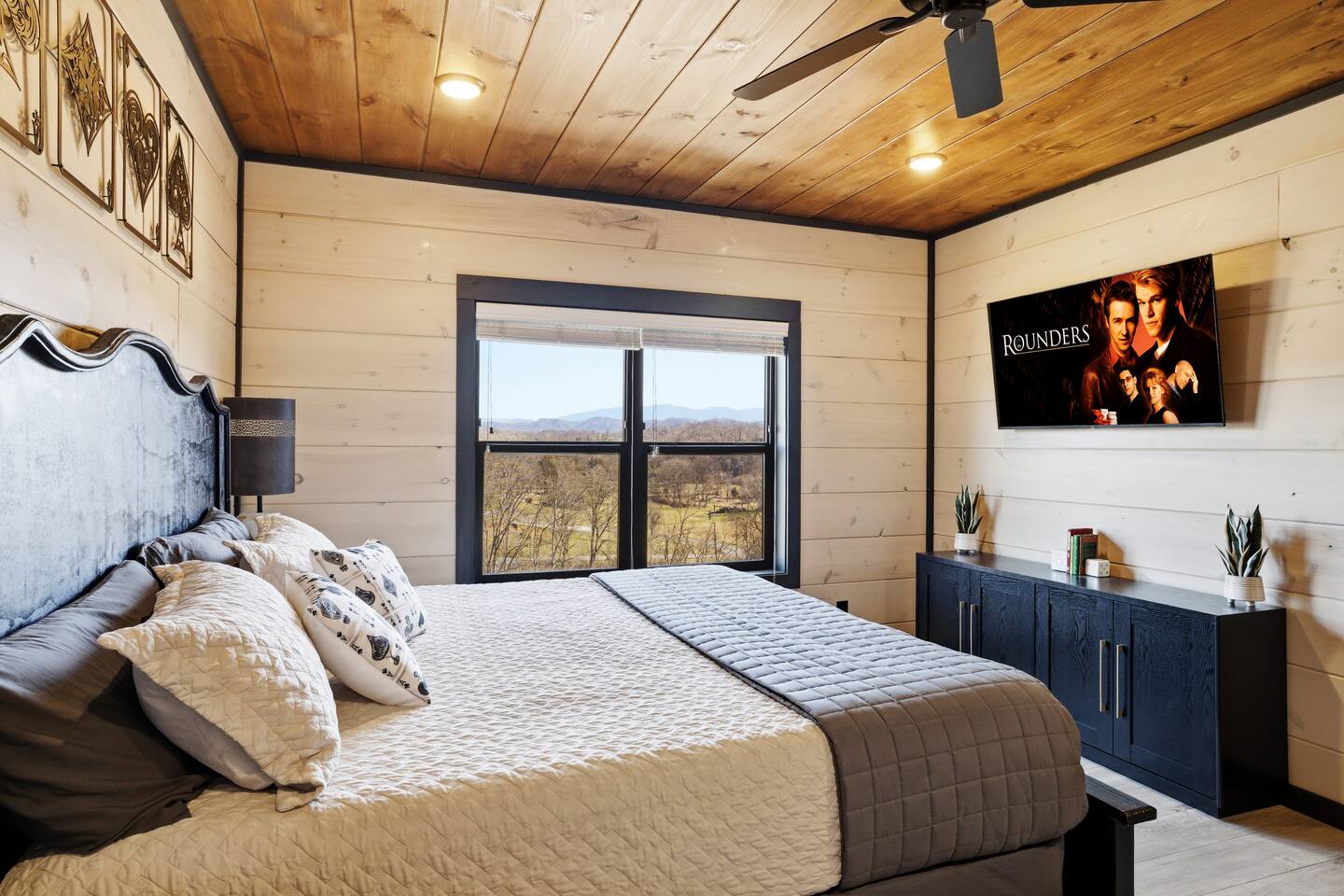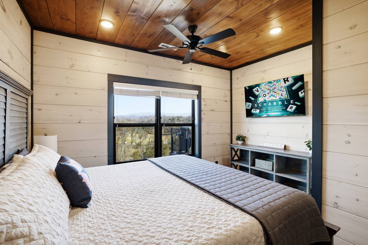 Game on Getaway — a new luxury cabin with stunning mountain views, high-end amenities, 5 bedrooms and 6 baths, comfortably accommodating up to 18 guests. This cabin includes access to a Water Park/Resort and is full of unique, private amenities - sauna, exercise bike, weights, hot tub, heated indoor pool, theater room, PS5, Nintendo Switch, arcades, and EV charger. Located just 5 minutes from the Smoky Mtn Pkwy, Game on Getaway offers the perfect blend of relaxation, play, and mountain memories.