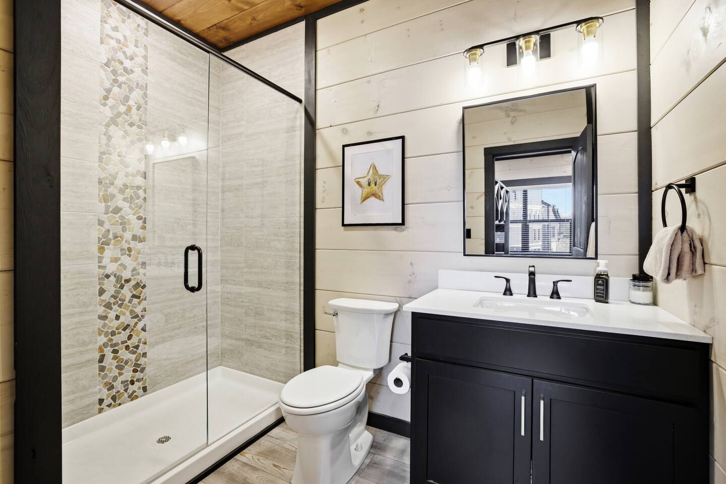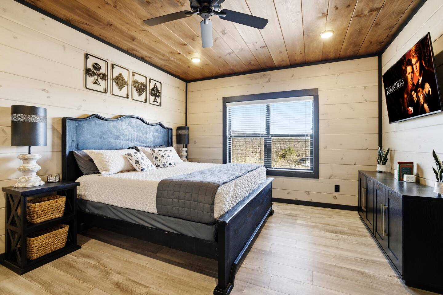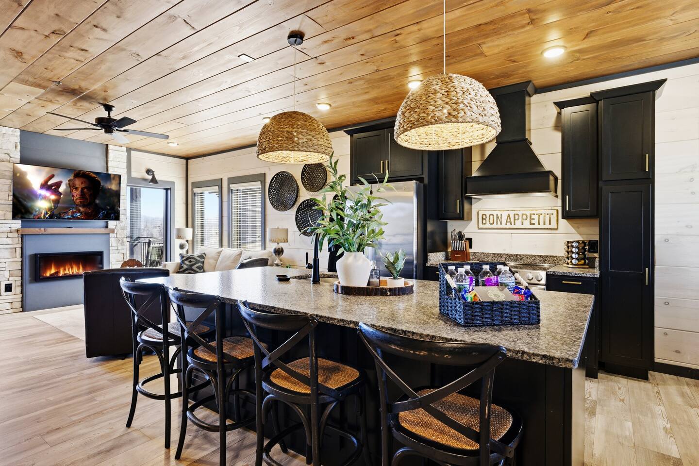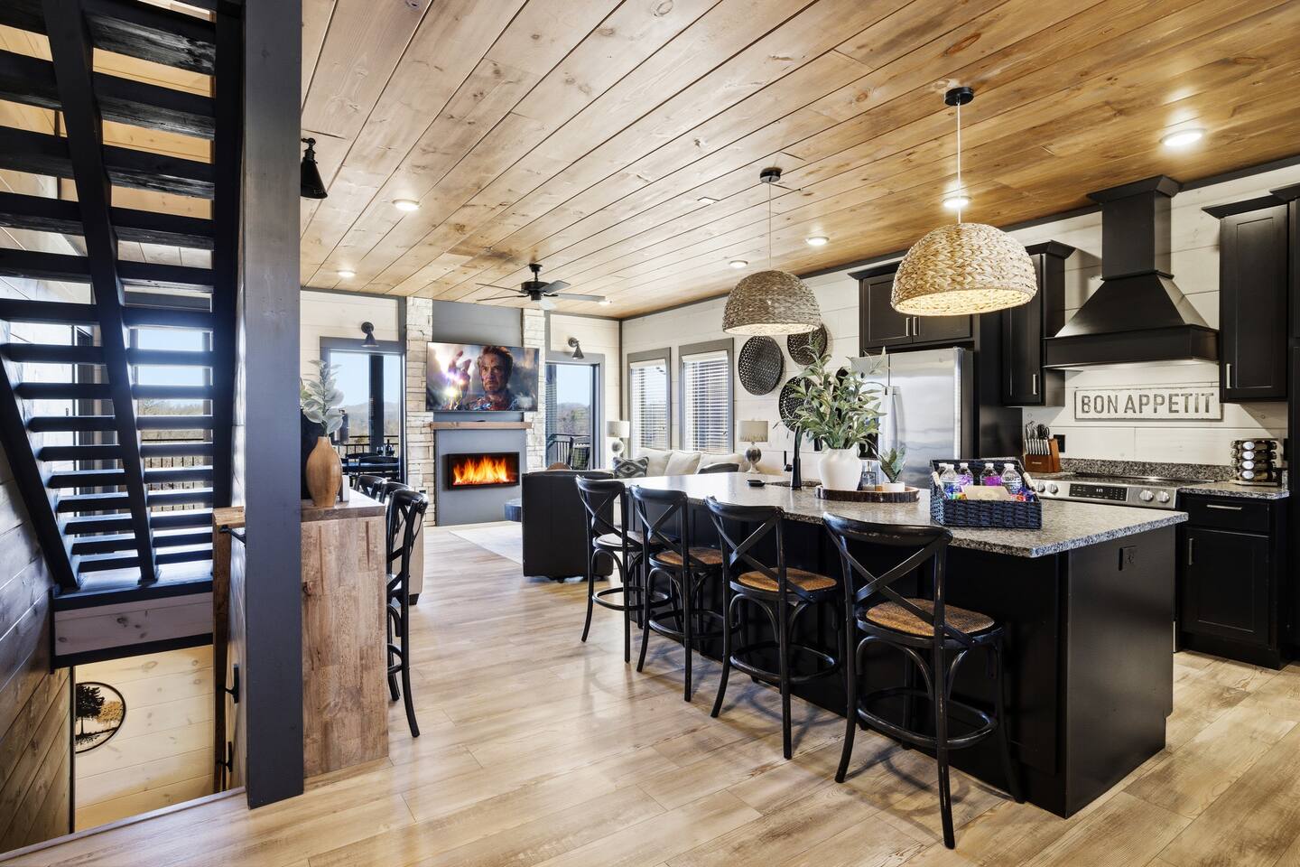 Game on Getaway — a new luxury cabin with stunning mountain views, high-end amenities, 5 bedrooms and 6 baths, comfortably accommodating up to 18 guests. This cabin includes access to a Water Park/Resort and is full of unique, private amenities - sauna, exercise bike, weights, hot tub, heated indoor pool, theater room, PS5, Nintendo Switch, arcades, and EV charger. Located just 5 minutes from the Smoky Mtn Pkwy, Game on Getaway offers the perfect blend of relaxation, play, and mountain memories.
